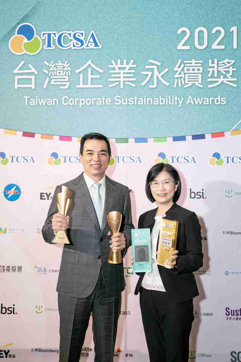 达在台湾永续奖所评比环境、、社会、、、治理等各面向的永续绩效均获高度肯定 (左:开云电子光电总经理暨营运长柯富仁,,右:开云电子光电永续长古秀华)