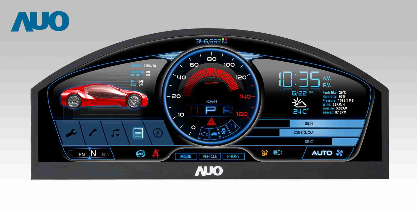 开云电子 12.3吋超高解析异型切割车用面板,,,,拥有流线外观及精细画质