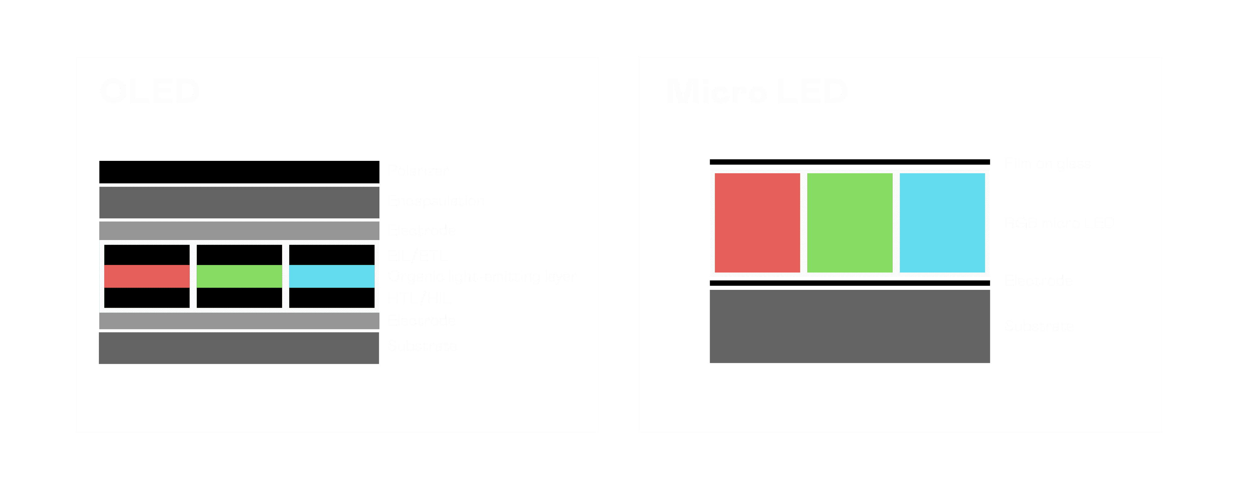以 LED 做为显示画素,,可让 LED 的发光效率发挥到极致,,,从而让显示器具备优异的亮度表现,,不论是在户外或室内,,,均具备出众的显示效果。。同时,,,,与使用有机材料的 OLED 相比,,,,LED 具备更稳定、、、、寿命更长的特性,,,不仅不会有画面烙印问题,,,而且更不容易出现故障、、、坏点。。。