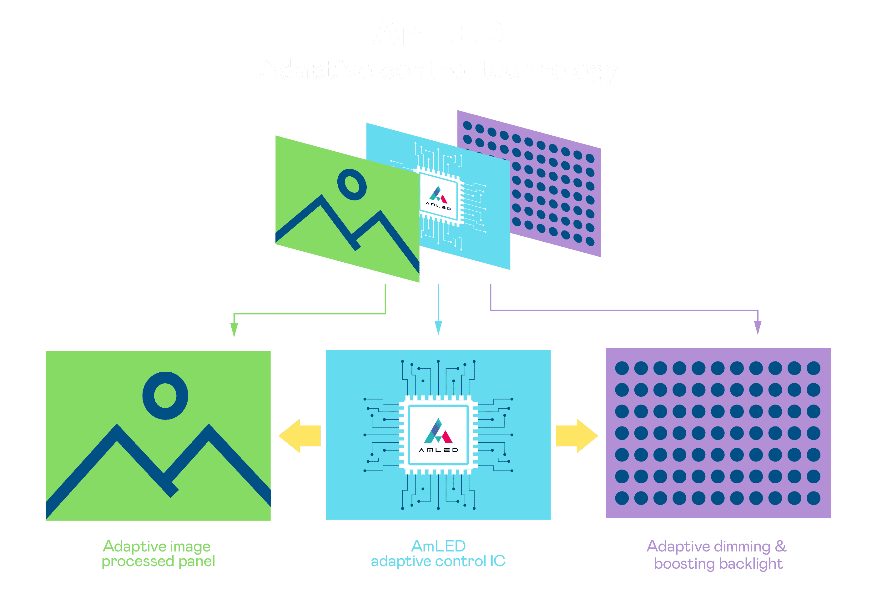 透过动态影像处理和 Mini LED 背光模组的动态对比及峰值亮度调变,,,AmLED 显示技术精准细致的局部调光效果达到超过 1,000 nits 的超高亮度表现,,,亮部更明亮、、、暗处更深邃,,呈现真实黑色中的亮度以及平滑灰阶,,,,打造出具层次分明的精致光影细节。。。。
