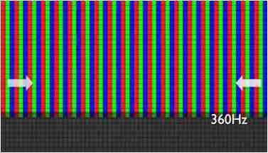 传统液晶驱动是从左到右单向进行,,,在画面更新速度愈来越愈快的情况下,,位于驱动线路末端的右下角区域,,画素的闸极来不及在短时间内获得足够电压,,无法显示出正确的颜色资讯。。 |